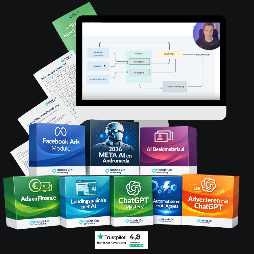 Massale zichtbaarheid door ijzersterke advertenties én AI. Zonder dure bureau's of avondvullende verkoopwebinars